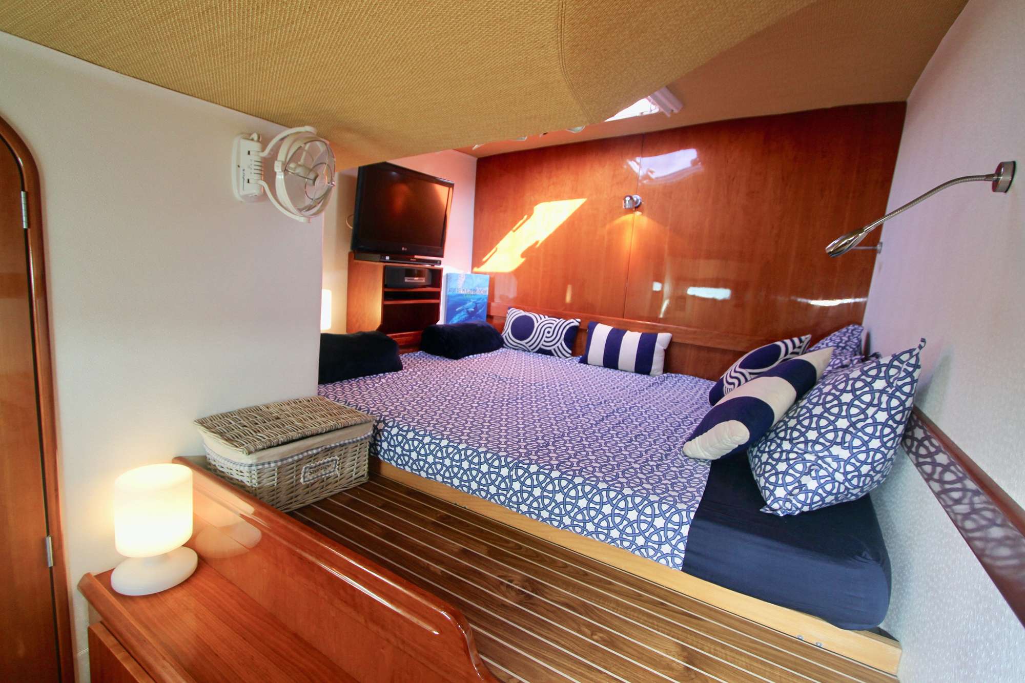 The rear starboard cabin has its own shower cubicle, in the same private companionway, and shares the toilet with the forward cabin in the same location.