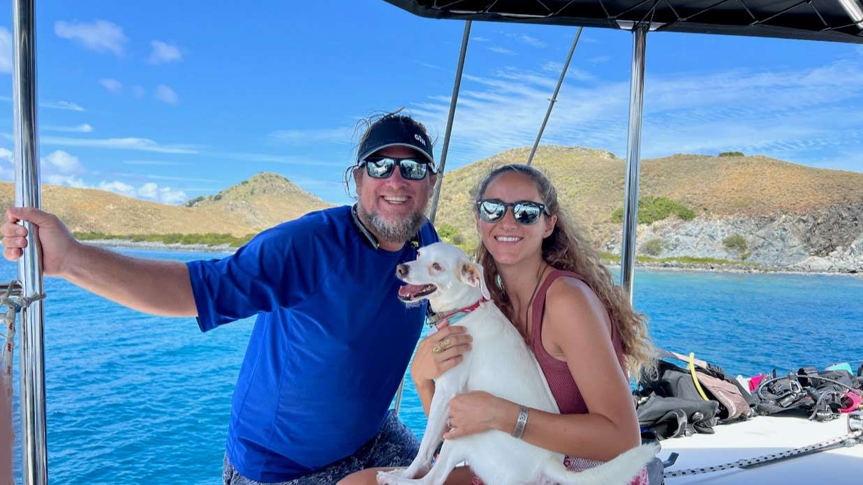 Kaya and Chris met on a marine science job in Culebra, PR in 2015 and were soon spending every free moment together. After the job, Chris followed Kaya first around Puerto Rico, and then began visiting her between jobs. Conspiring with her sisters, Chris surprised Kaya during a visit to see family in Ireland when she finally agreed to be his girlfriend. They have since crossed the US via campervan, traveled through dozens of countries, and lived in CA, FL, PR, and the USVI together. They have made a point of taking regional cooking classes as they have traveled the world, and take pride in being adventurous eaters. They are both passionate marine scientists with teaching experience at the university level, and love introducing their guests to the wonders of the ocean world. Their combined skills and experience offer travelers a broad array of options for indulging in all aspects of life at sea. They specialize in the BVI, USVI, and Spanish VI where Kaya grew up cruising and they both know intimately. Chris and Kaya got engaged on a trip to Australia in 2022 and celebrated their wedding in June 2024.