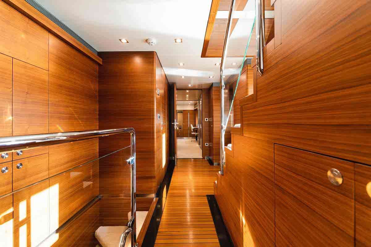 Below deck features the well-appointed VIP with King bed, vanity, walk in closet and ample storage space. The Portside KING stateroom is just aft of the VIP, mid-ship. Also Midship, the Starboard Twin stateroom has amble space, hanging closet and a spacious pullman. Another Twin stateroom is aft with a separate staircase. This stateroom is ideal for older kids or an adult seeking just a bit more privacy, this room also has a hanging closet and Spacious pullman.